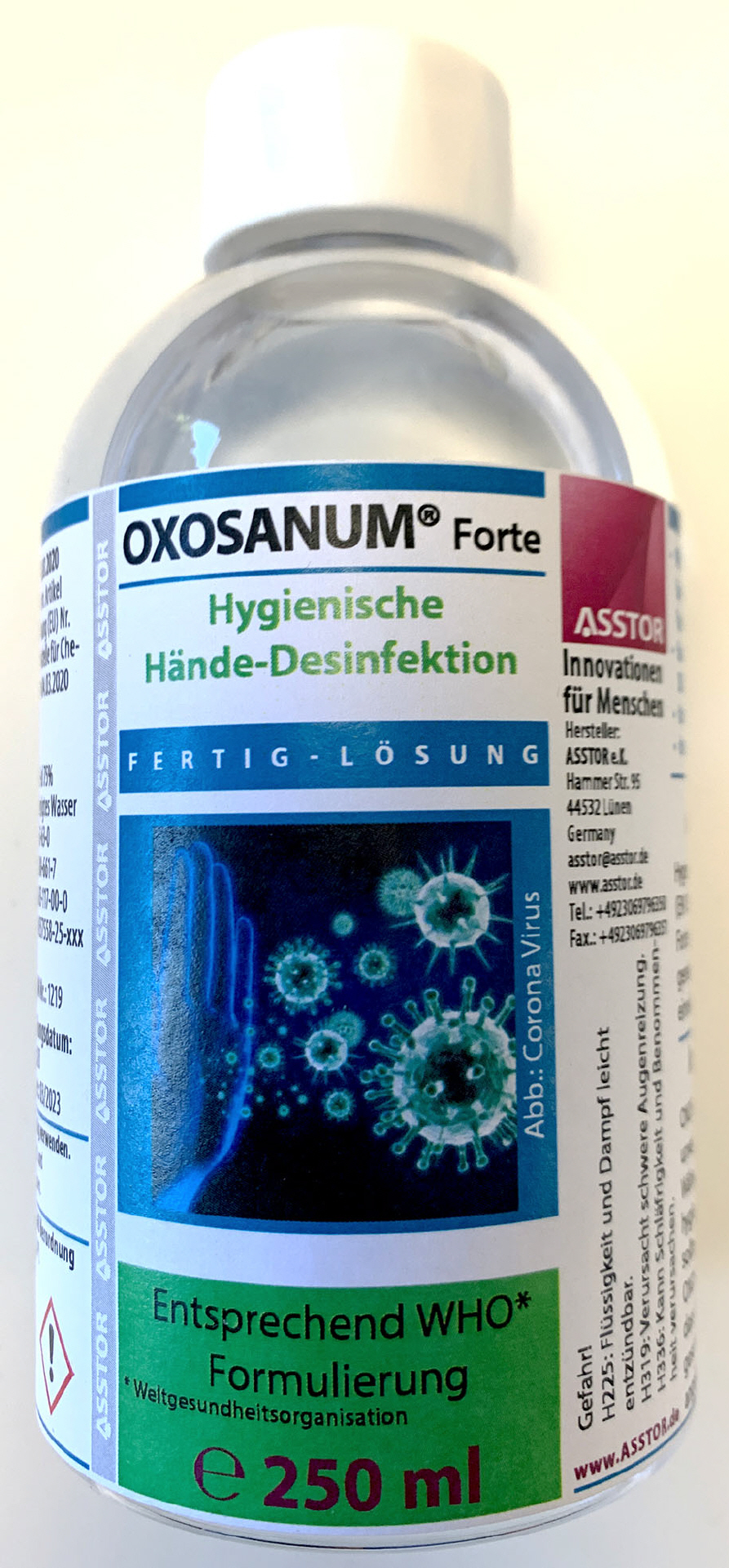 - OXOSANUM® Forte Hand Desinfektionsmittel ist bei der Bundesanstalt für Arbeitsschutz und Arbeitsmedizin (BAuA Registriernummer N-88166) registriert.